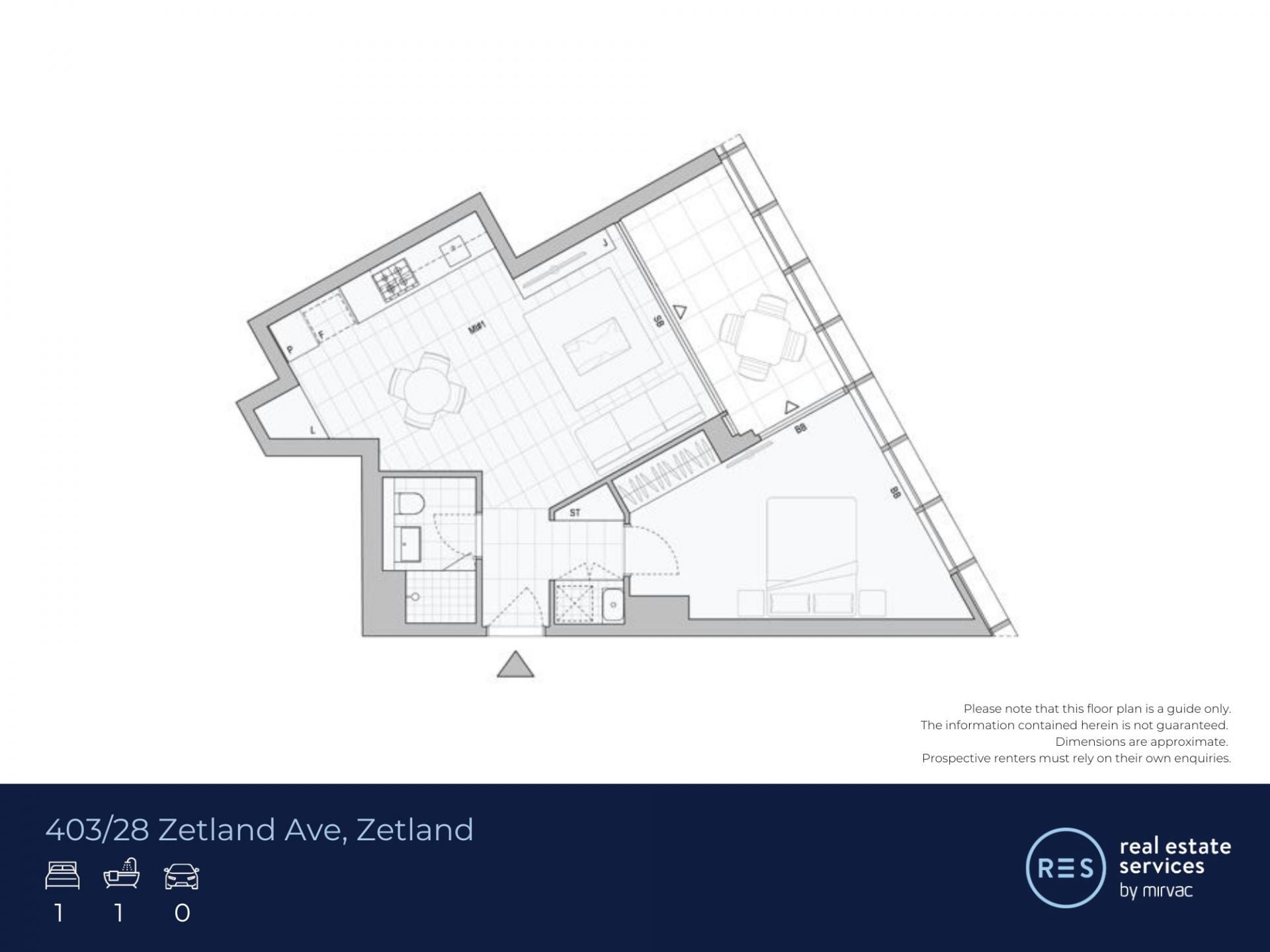 This 59sqm, 1-bedroom apartment features: