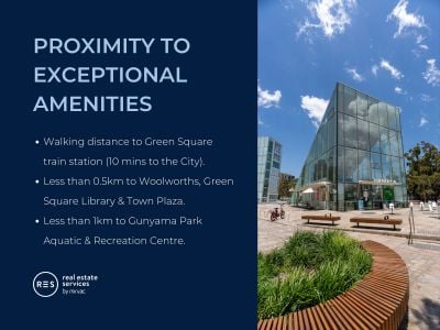 Here in Green Square you will find yourself located within minutes of cafes, shops, public transport and award winning amenities such as the new Gunyama Aquatic and Recreation Centre and Green Square Library.