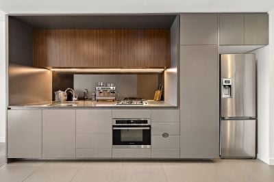 • Sleek kitchen with stone benchtops & Smeg appliances
