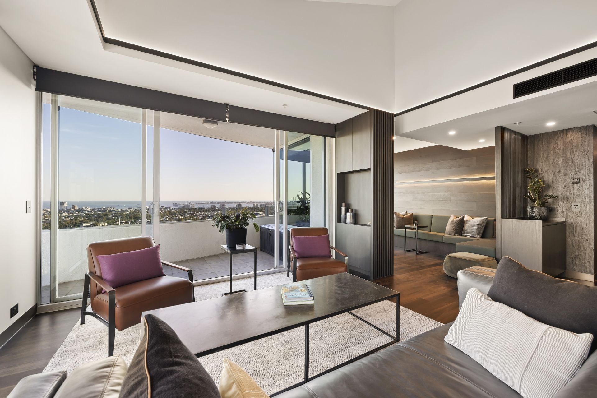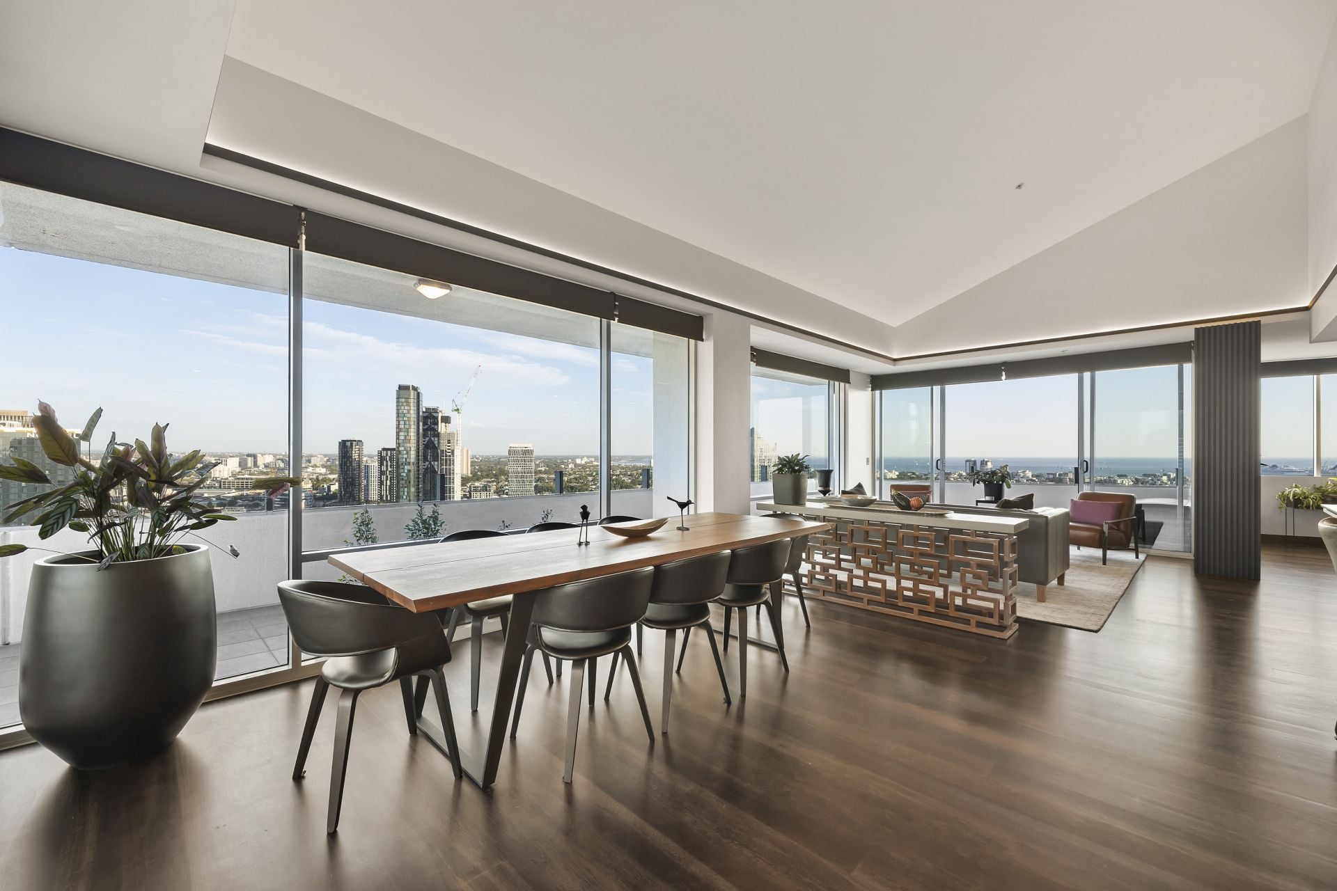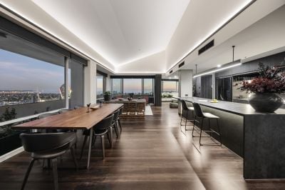 Set high above the waterfront in the prestigious Tower 4 at Yarra's Edge, this exquisitely renovated penthouse delivers a rare fusion of sophistication, craftsmanship, and uninterrupted panoramic views. Every space has been meticulously reimagined, from the expansive multi‑zone living areas to the chef‑designed kitchen, creating a residence that embodies elevated luxury and effortless comfort. With sweeping vistas spanning the CBD skyline, the Yarra River, and Port Phillip Bay, this home offers a breathtaking backdrop to daily living and an unmatched sense of sanctuary.