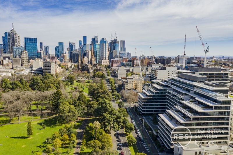 Elevated to inspire on the first floor, step outside to a full-width undercover balcony with a private leafy aspect sweeping across Albert Street to the verdant Fitzroy Gardens canopy. This outdoor haven will be used on a daily basis to relax, indulge and entertain in a pure position of prestige.