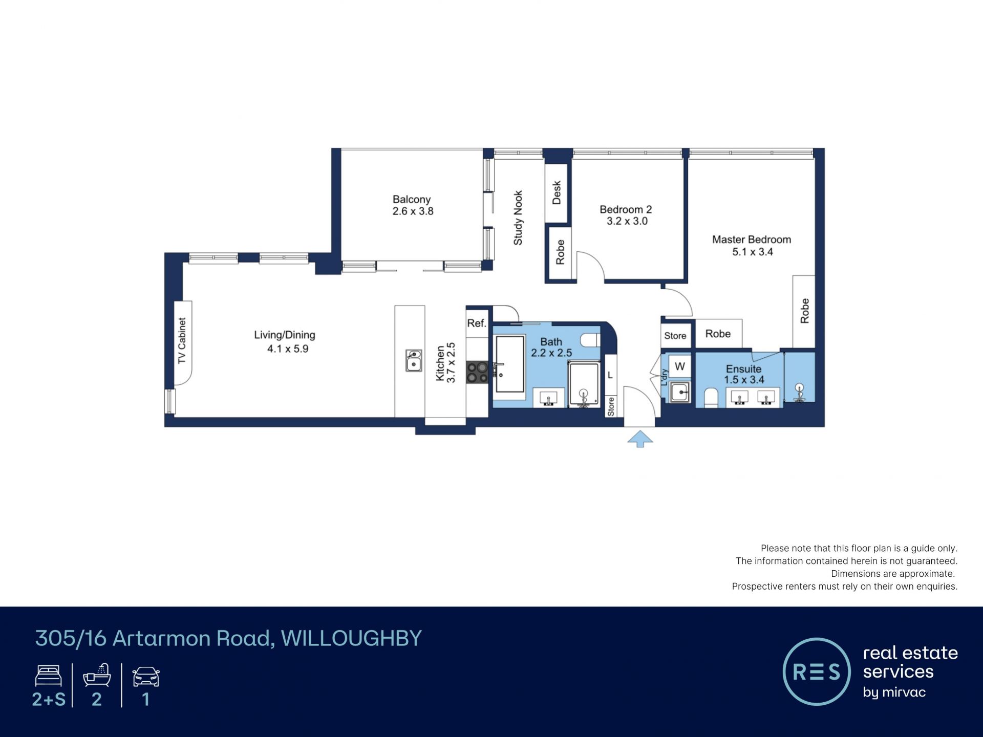 - Onsite building management, 500m to Willoughby Leisure Centre and 1km from Woolworths Northbridge