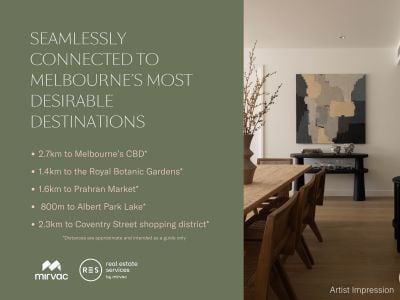 Located just moments from Albert Park Lake and Fawkner Park, and only 2.7km from Melbourne's CBD, with St Kilda, South Melbourne and South Yarra nearby, this is an address that connects you effortlessly to the very best of Melbourne living.